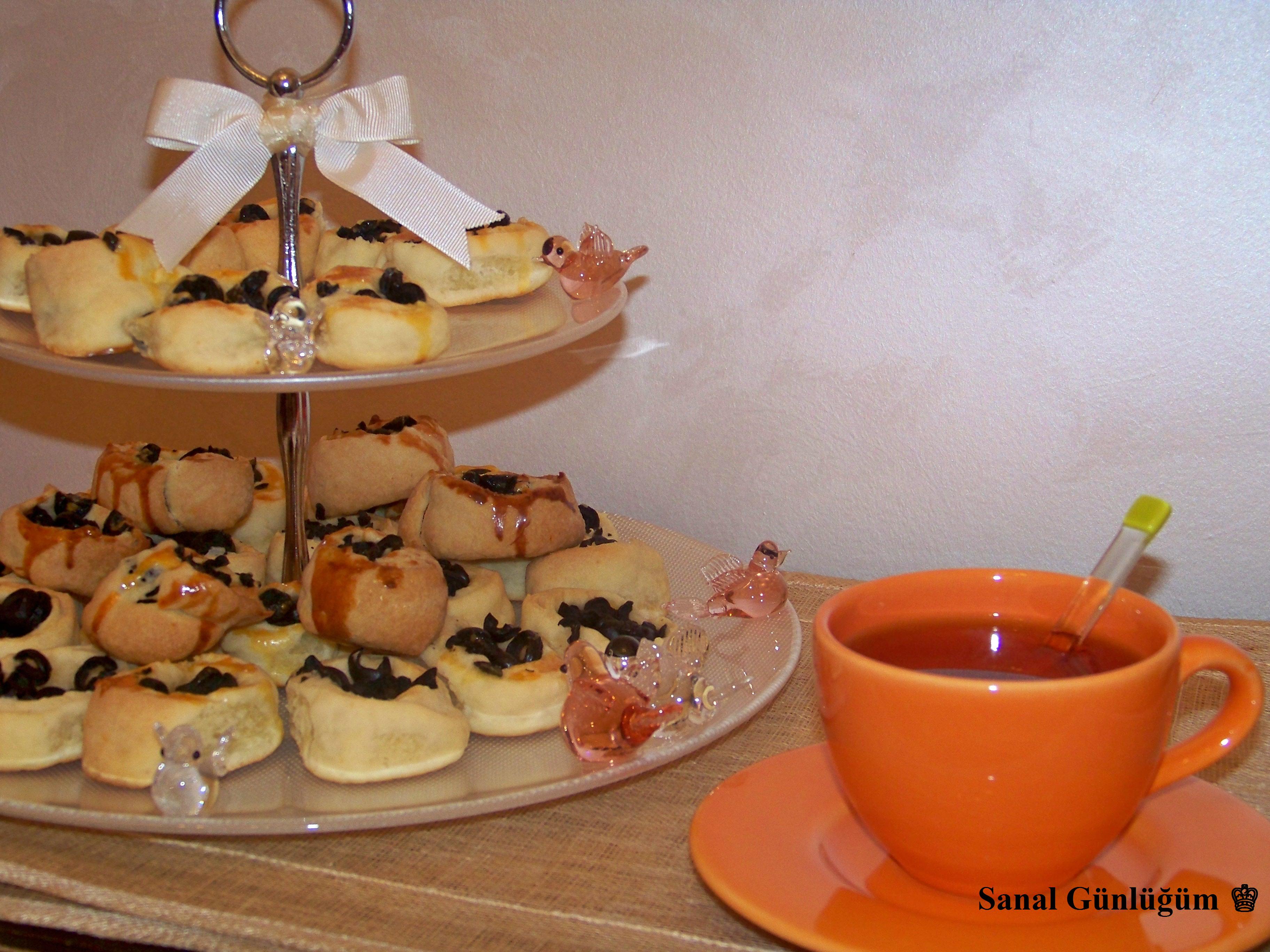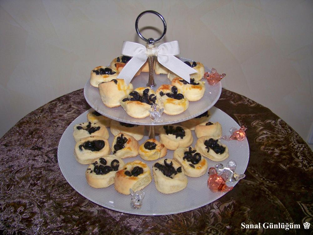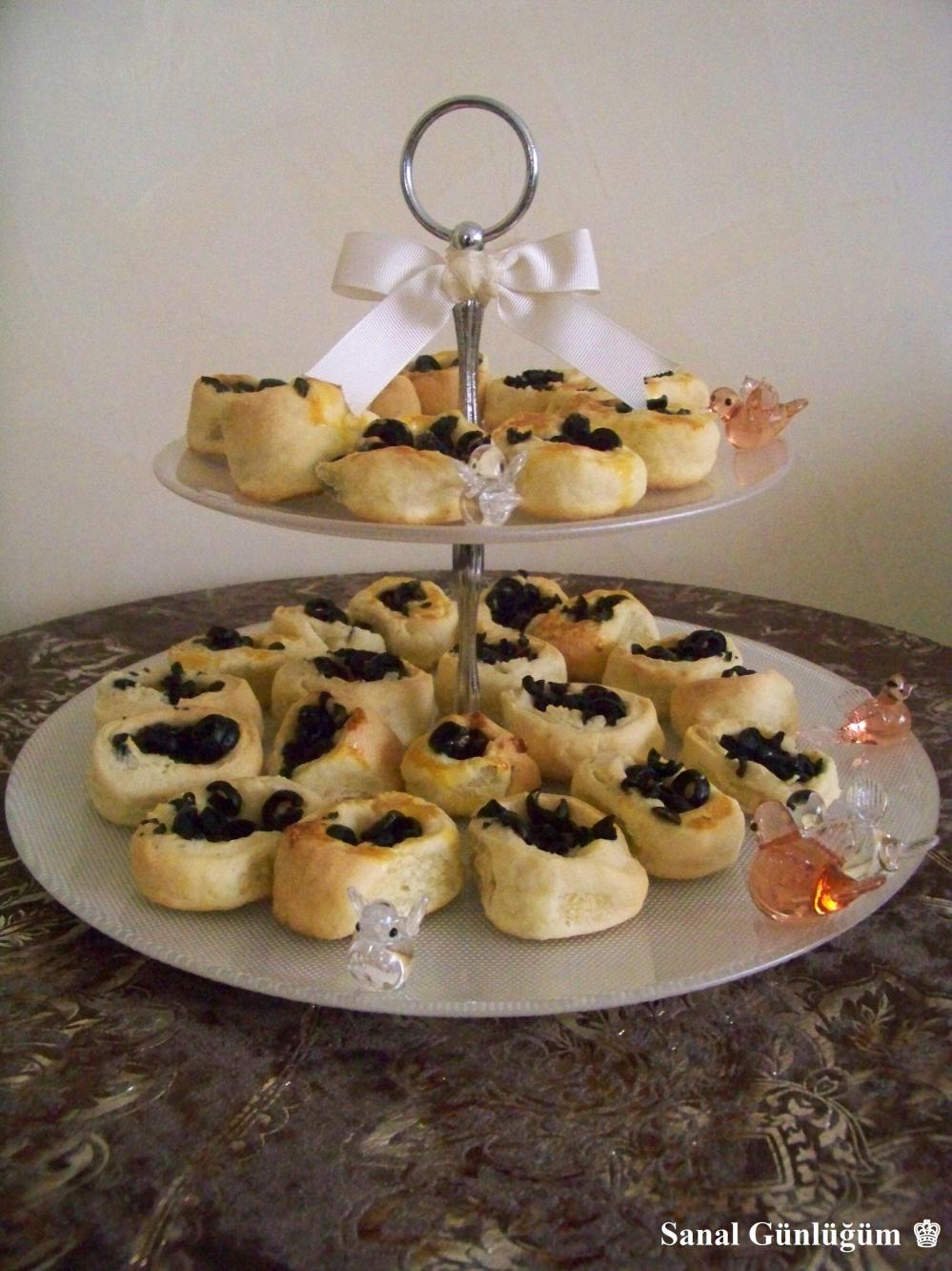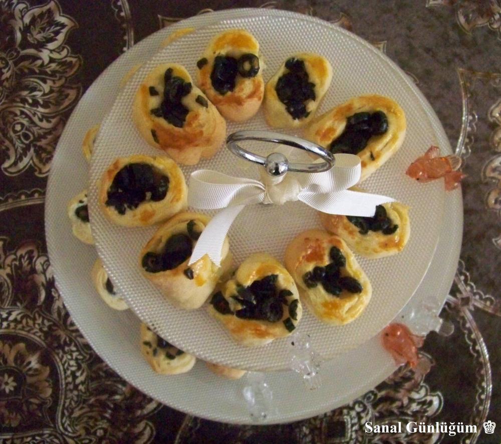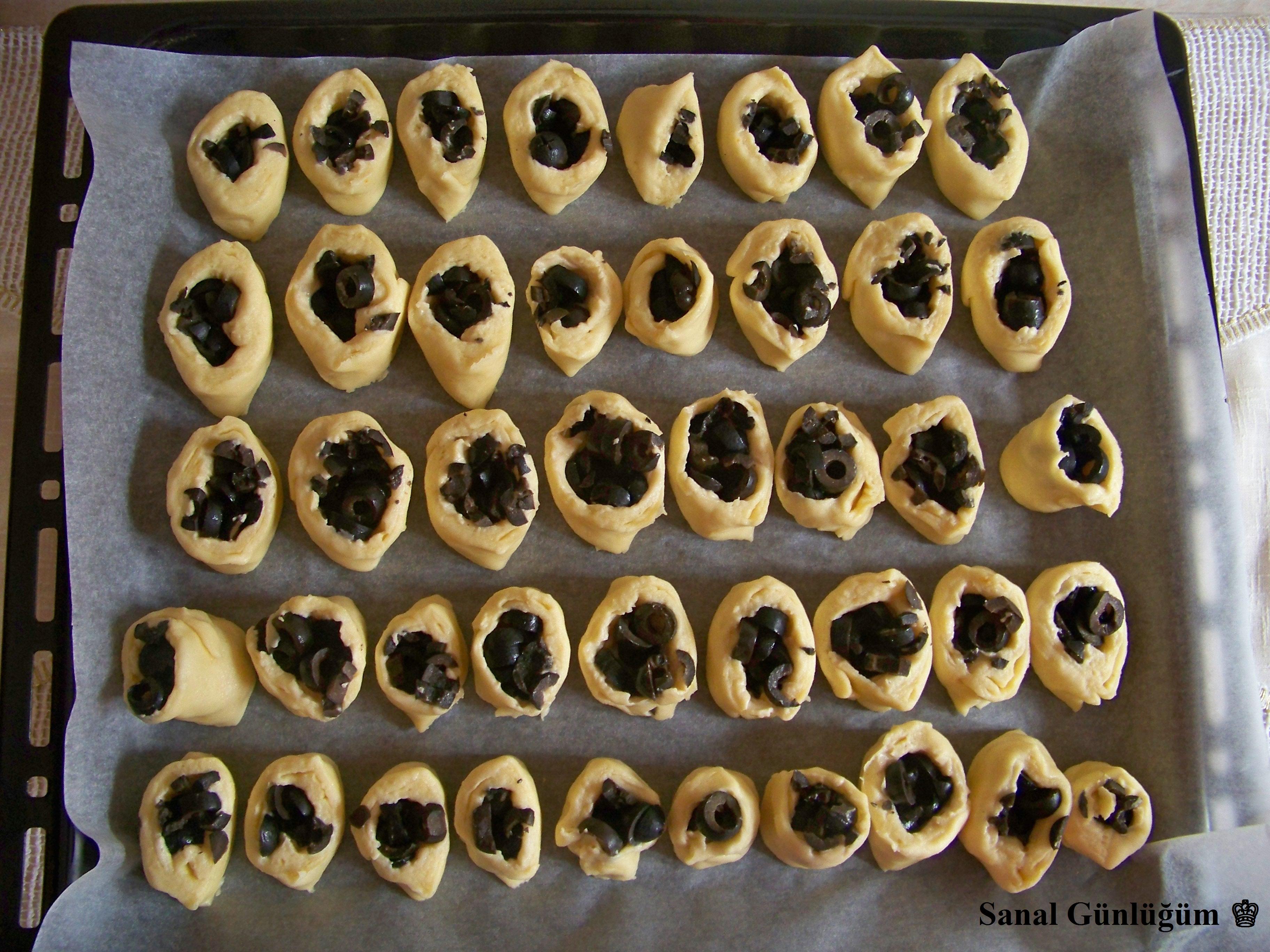 Bütün malzemeleri bir kapta karıştırdıktan sonra, hamurunuzu tezgahın üzerine alın ve dört eşit parçaya bölün. Herbir parçayı 0.5 cm kalınlığında açın. Ardından dilimlenmiş zeytinleri ilave edin ve hamurunuzu rulo haline getirin. Daha sonra rulo haline getirmiş olduğunuz hamurunuzu ikişer cm genişliğinde kesin. Pişirme kağıdı yerleştirdiğiniz tepsiye zeytinli rulolarınızı yerleştirin. 😉