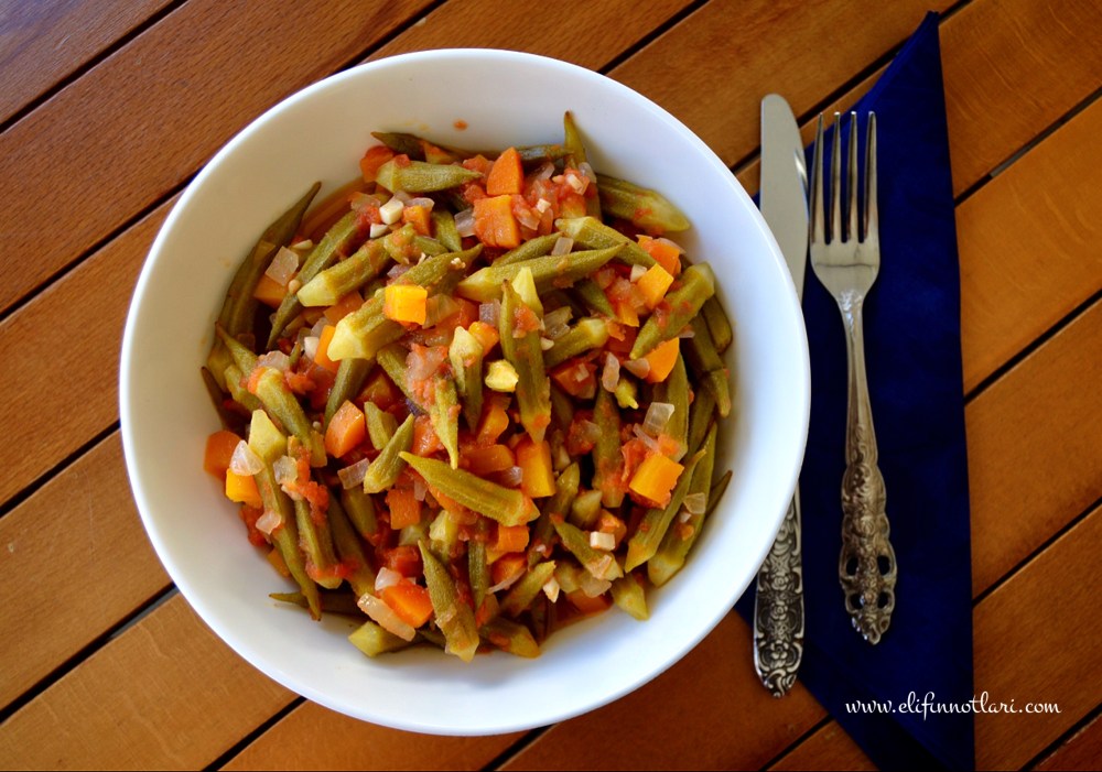 Zeytinyağlılar >Zeytinyaglı Bamya Yazan: Elif on Temmuz 12, 2015Temmuz 30, 2017 Malzemeler: 500 gr bamya 1 adet orta boy kuru soğan 8 diş sarımsak 1 adet orta boy havuç 3 adet küçük boy domates 1 adet limon Zeytinyağ Tuz Kaynamış su Yapılışı: Bamyaları ayıklayıp, sirkeli suda bekletin. Bu arada kuru soğan, havuç ve sarımsakları çelik bir tencereye küp şeklinde doğrayın. Üzerine bir çay bardağı kadar zeytinyağı ekleyip, kısık ateşte 5-10 dakika kavurun. Bamyaları süzün. Onlar süzülürken sizde domatesleri rendeleyin ve limonu sıkın. Kavrulan sebzelerin üzerine rendelenmiş domatesleri ekleyip 5-10 dakika pişirin. Bamyaları, limon suyunu ve tuzu ilave edin. (Tuz miktarını kendi damak tadınıza göre ayarlayabilirsiniz. 🙂 ) 5-10 dakika da bu şekilde pişirin. Bamyaların üzerini kapatacak şekilde kaynamış su ekleyin ve tencerenin kapağını kapatarak, 30 dakika kısık ateşte pişirin. Bunu paylaş: X'te paylaşmak için tıklayın (Yeni pencerede açılır) X Facebook'ta paylaşmak için tıklayın (Yeni pencerede açılır) Facebook Beğen Yükleniyor... İlgili