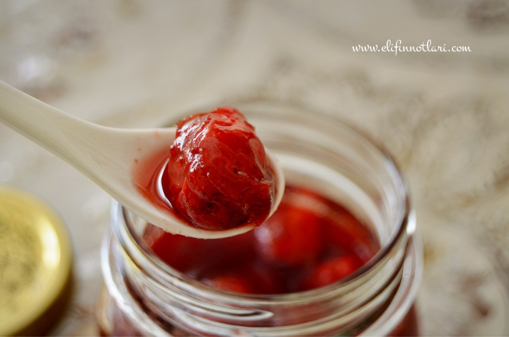 Şekerde bekleyen kızılcıkların üzerine suyu ilave edip kaynamaya bırakın. Kaynadıktan sonra kısık ateşte 45 dakika pişirin.
